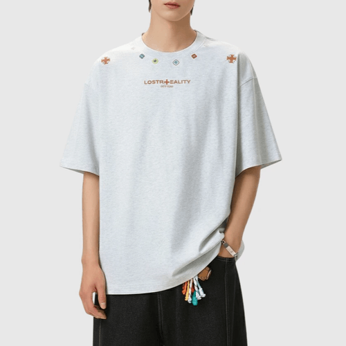 復古民族風細圖案刺繡編織 純棉短袖 T-Shirt [SBT-1482]