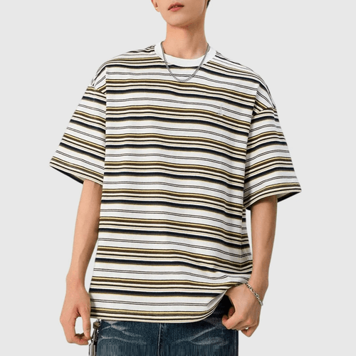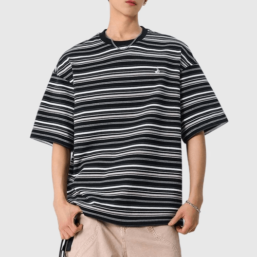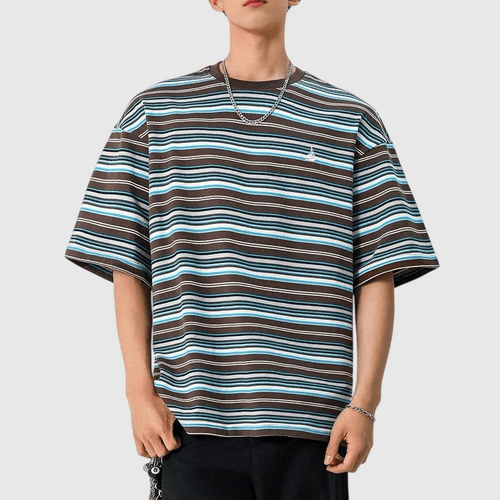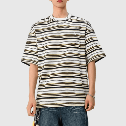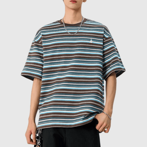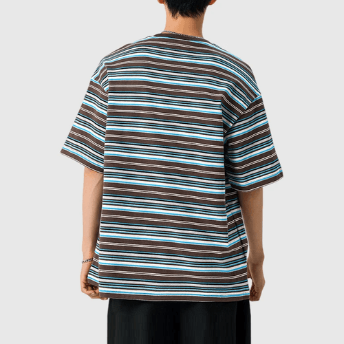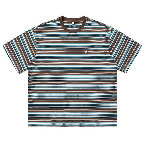 復古多色系條紋撞色燈塔小刺繡 短袖 T-Shirt [SBT-1483]