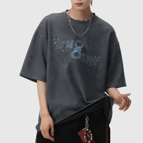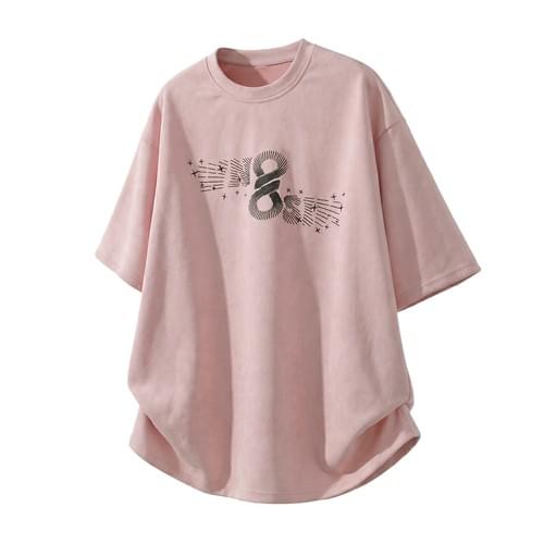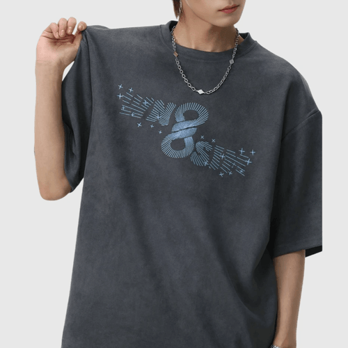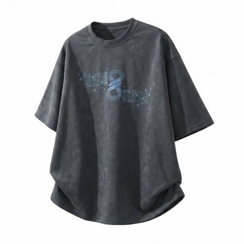 復古放射射線文字圖案印燙 絨面皮布短袖 T-Shirt [SBT-1487]
