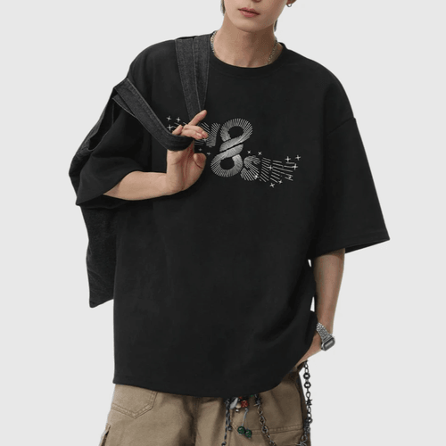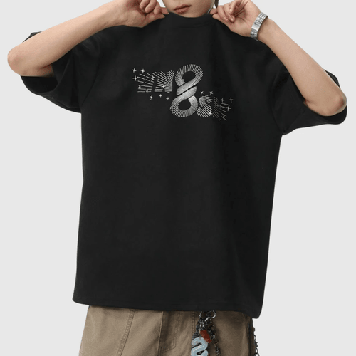 - 放射射線文字圖案線條印燙設計,極具視覺立體感