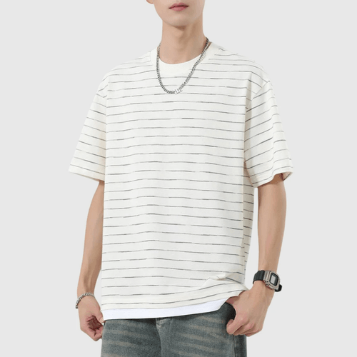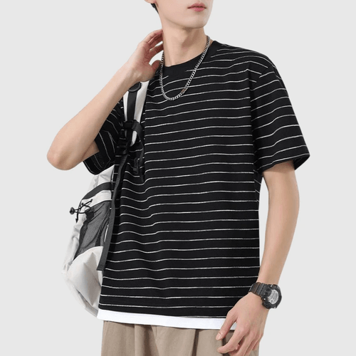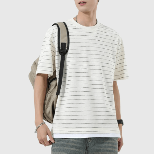 日系漸變色條紋假兩件式設計 短袖 T-Shirt [SBT-1491]