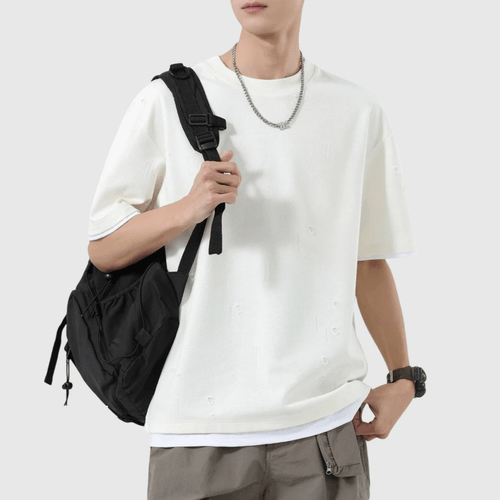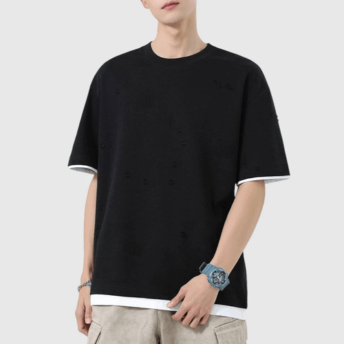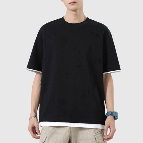 復古細破口造舊假兩件式設計 短袖 T-Shirt [SBT-1494]