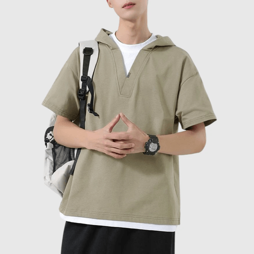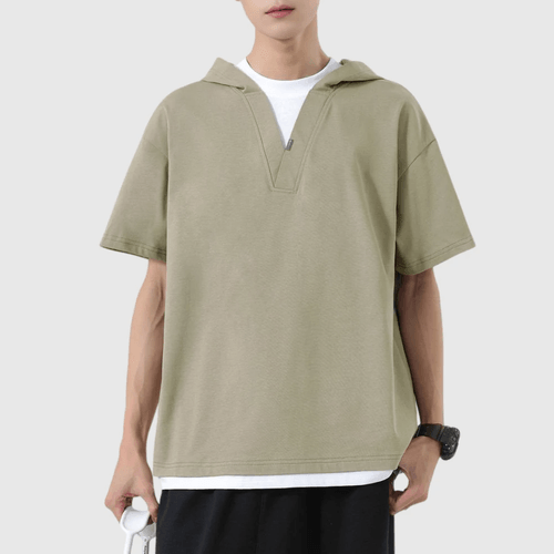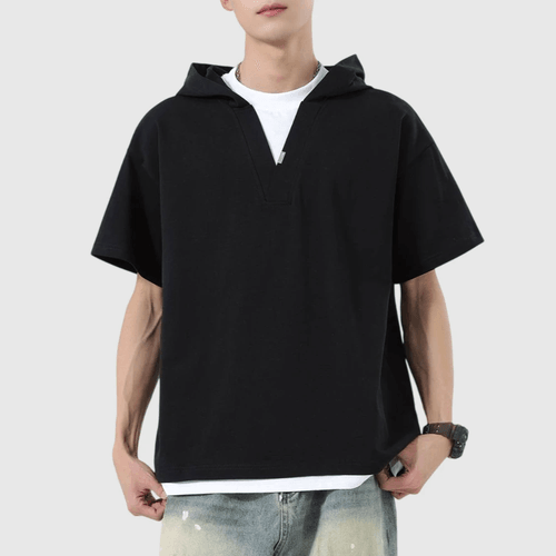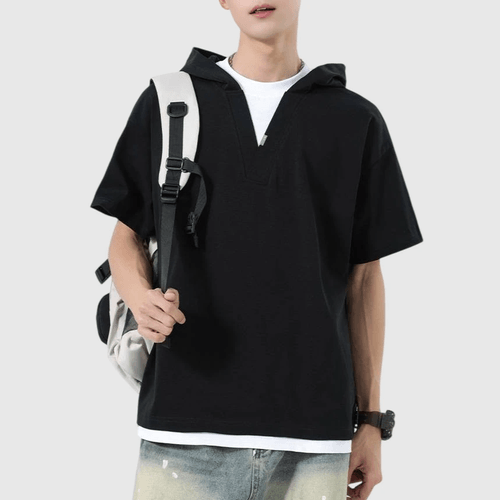 日系層次假兩件式設計 連帽重磅短袖 T-Shirt [SBT-1496]
