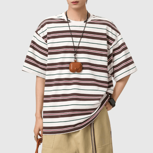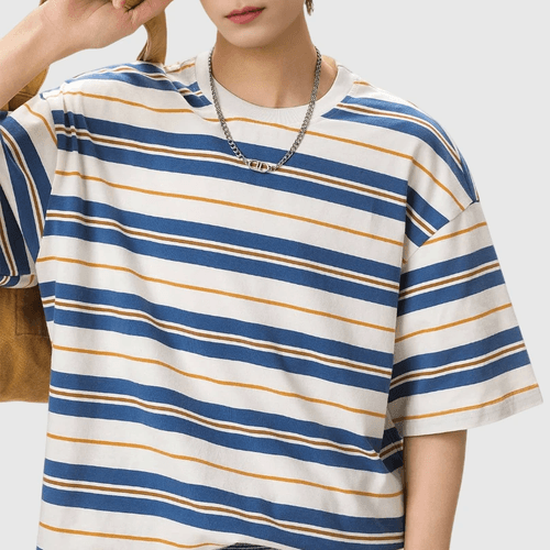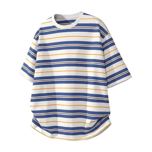 對比色系層次撞色橫間條紋 短袖 T-Shirt [SBT-1502]