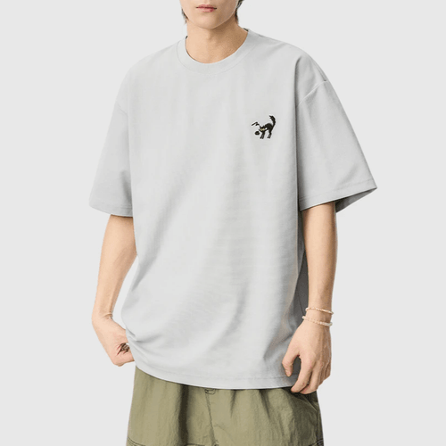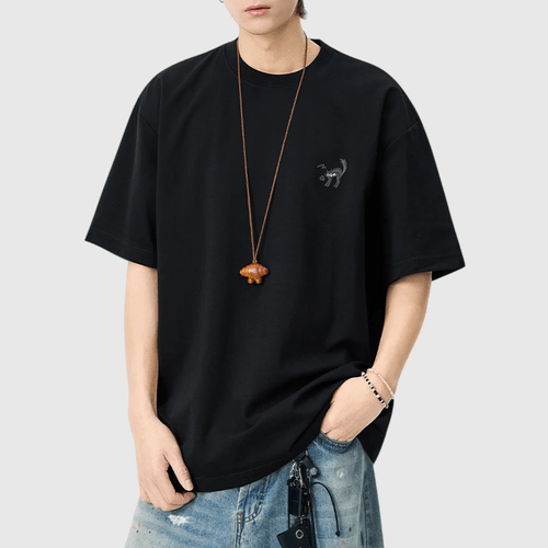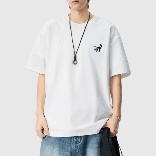 卡通貓仔細圖案刺繡 短袖 T-Shirt [SBT-1506]