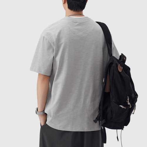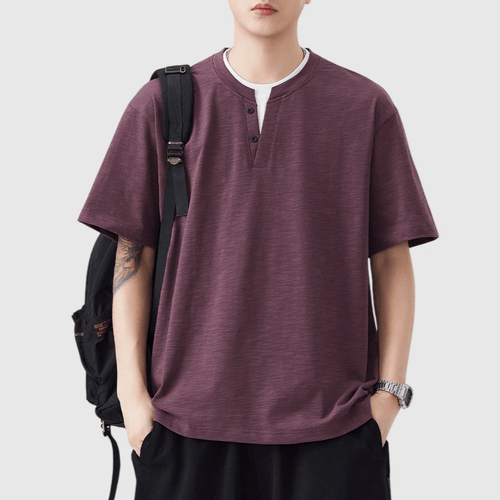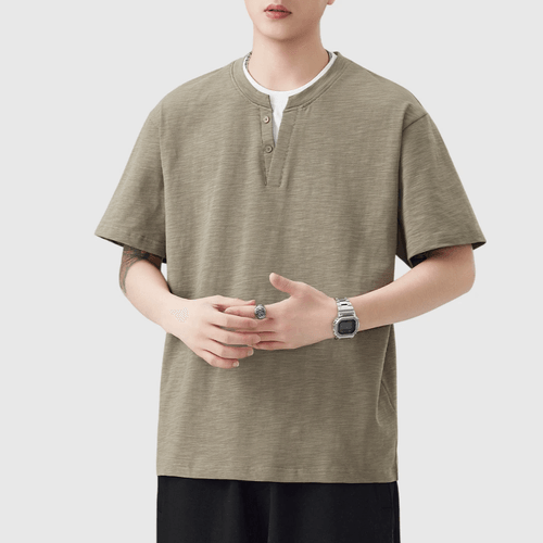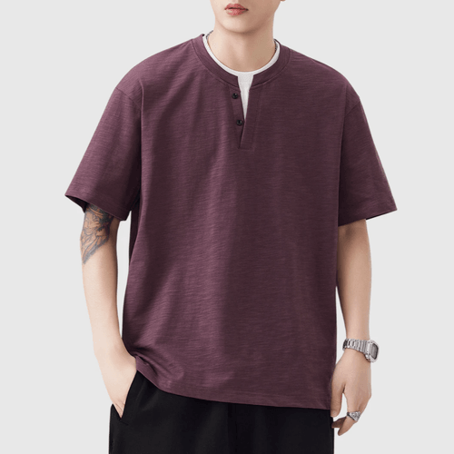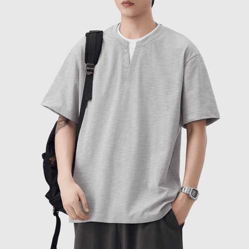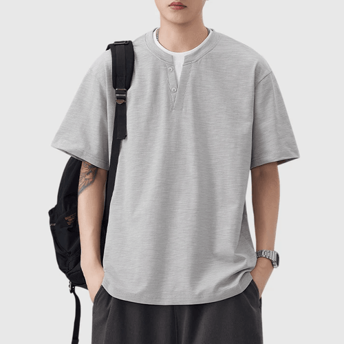 日系基礎層次假兩件式縫紉設計 亨利領純棉短袖 T-Shirt [SBT-1511]