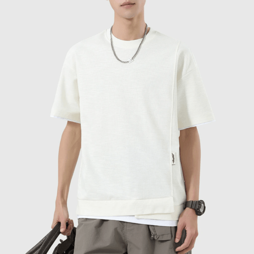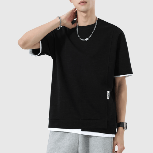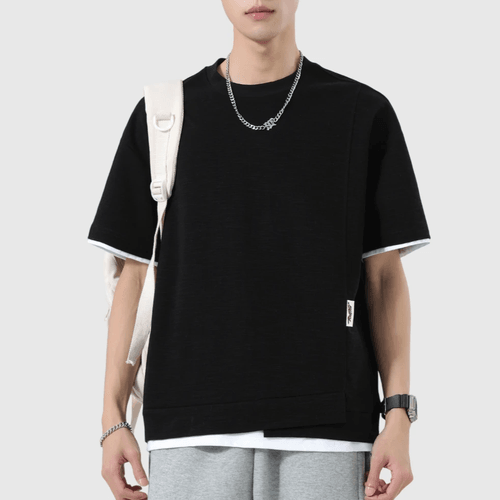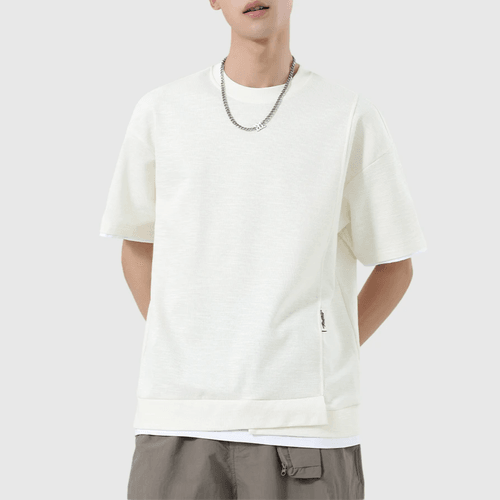 日系折疊層次假兩件式設計 天竺棉短袖 T-Shirt [SBT-1517]