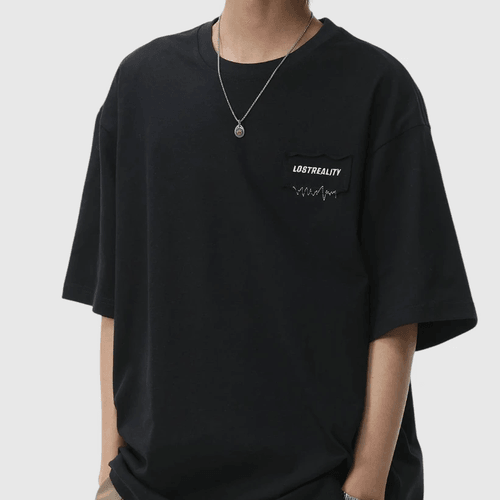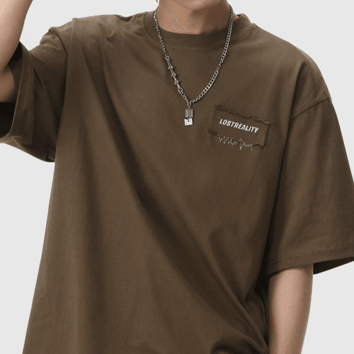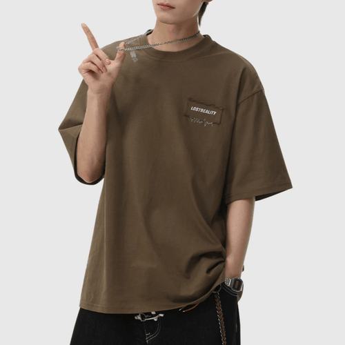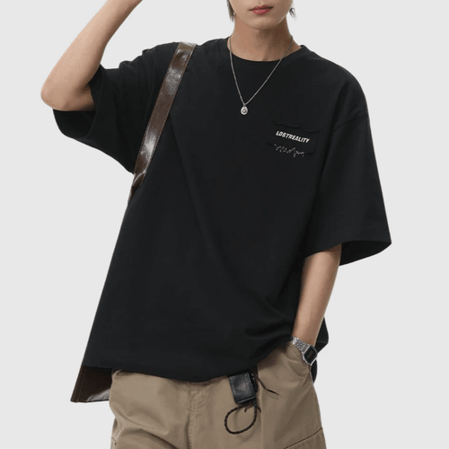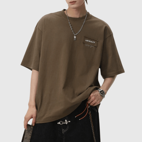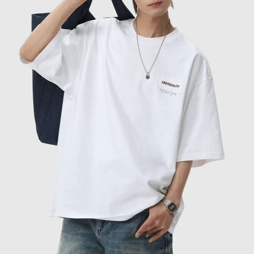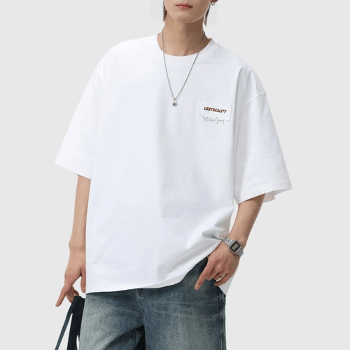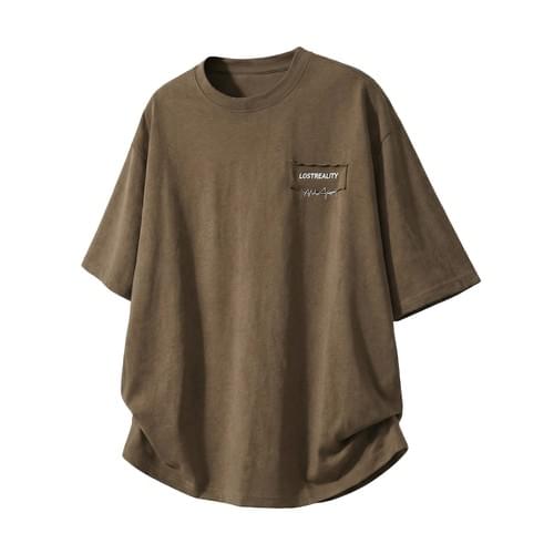 日系縫布細文字刺繡設計 純棉短袖 T-Shirt [SBT-1522]
