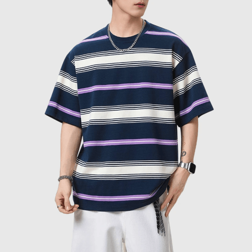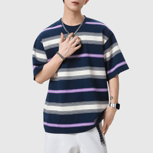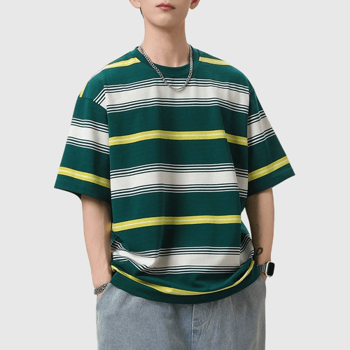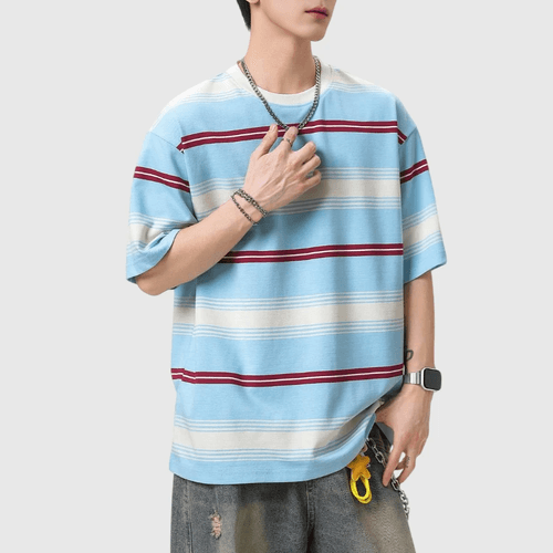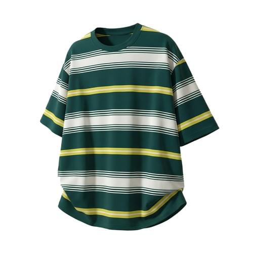 復古多色系撞色色織設計 純棉短袖 T-Shirt [SBT-1523]