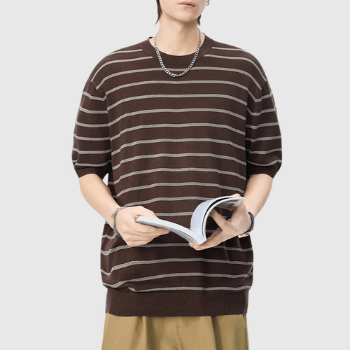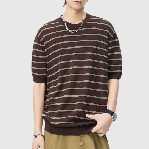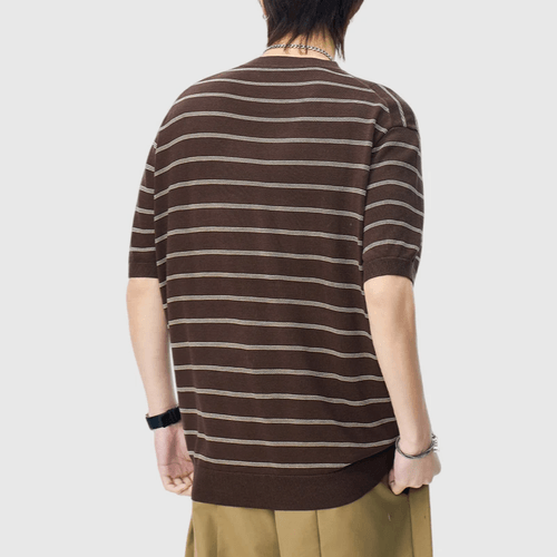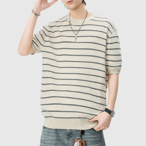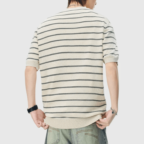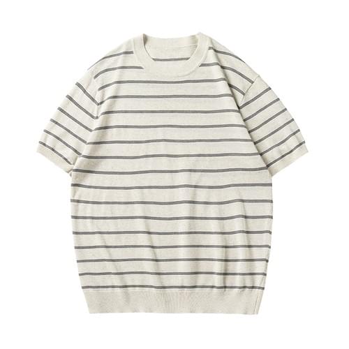 日系橫間條紋肌理紋理設計 麻質針織透氣短袖 T-Shirt [SBT-1537]