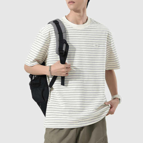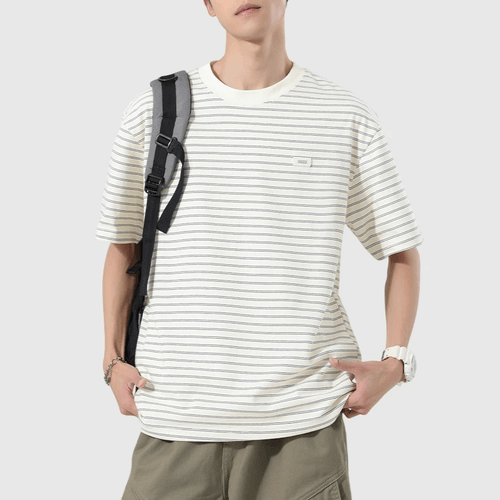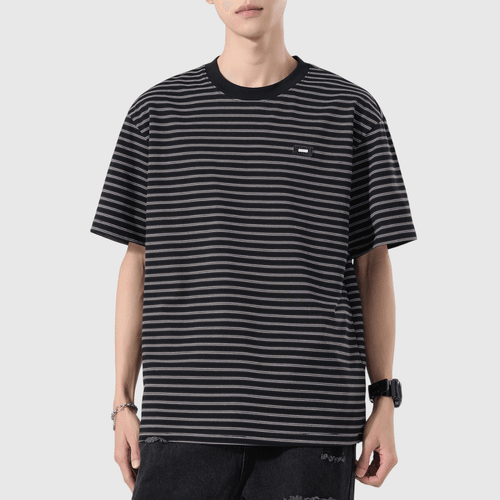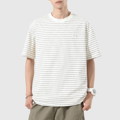 日系細標籤縫紉橫間條紋 短袖 T-Shirt [SBT-1547]