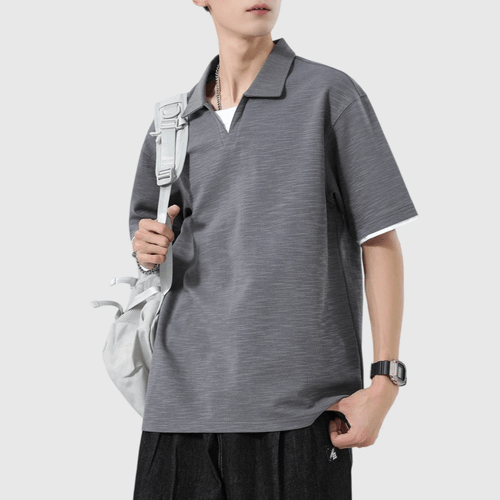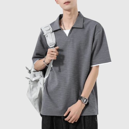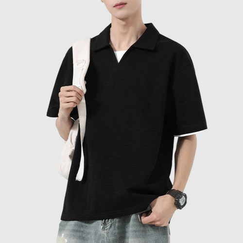 日系基礎假兩件式 V 領設計 天竺棉短袖 POLO T-Shirt [SBT-1499]