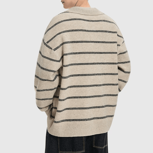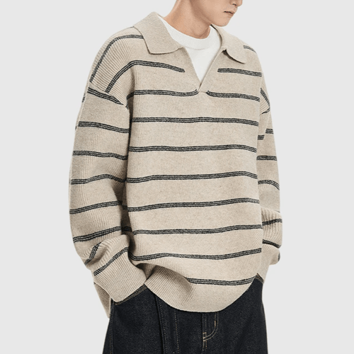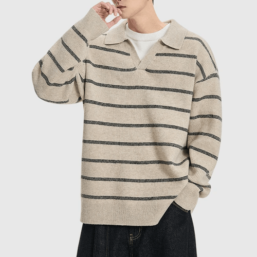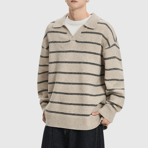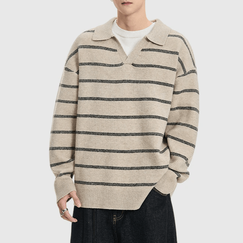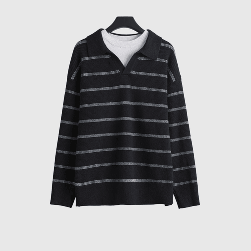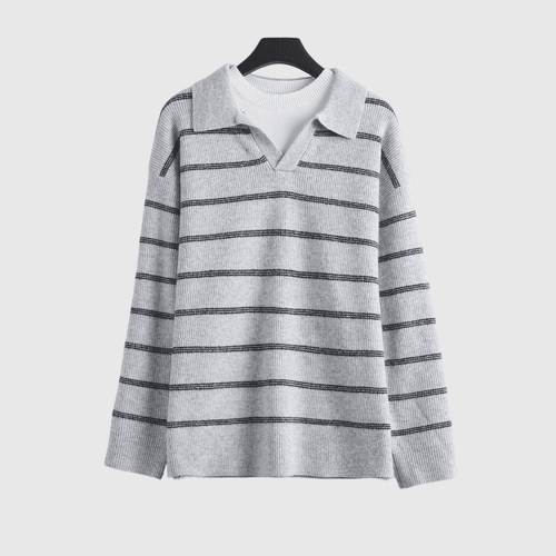 層次假兩件式條紋色織設計 V 領針織毛衣 [SBK-1133]