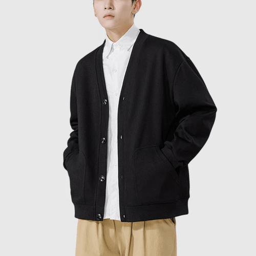 日系基礎斜插袋 V 領開胸 垂直紋理針織外套 [SBO-1277]