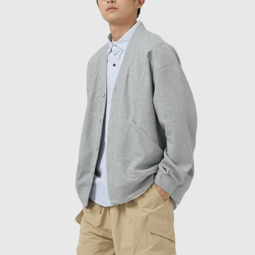 日系立體縫線側袋設計 針織 V 領開胸外套 [SBO-1338]