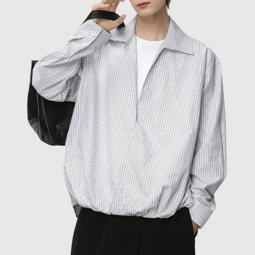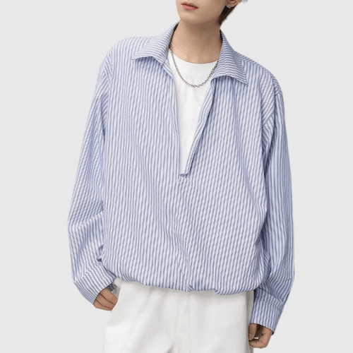 日系假兩件式 深 V 領透氣長袖恤衫 [SBS-1373]