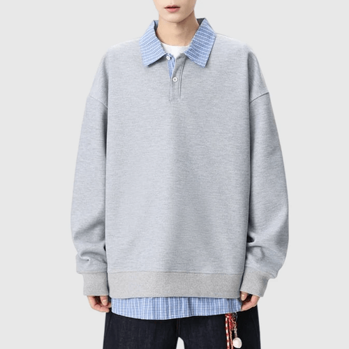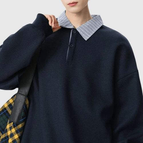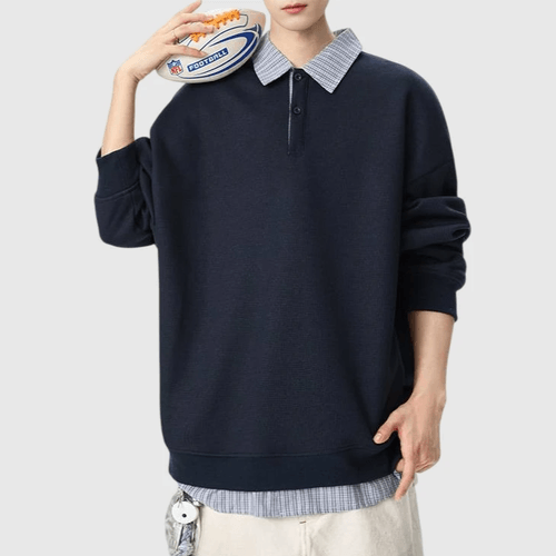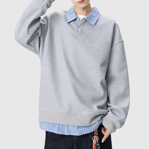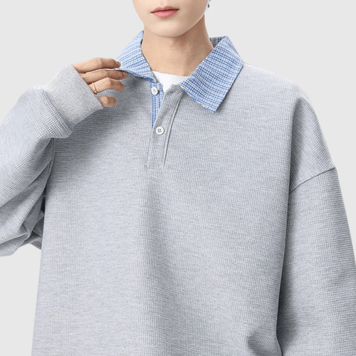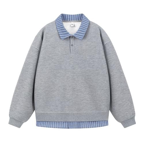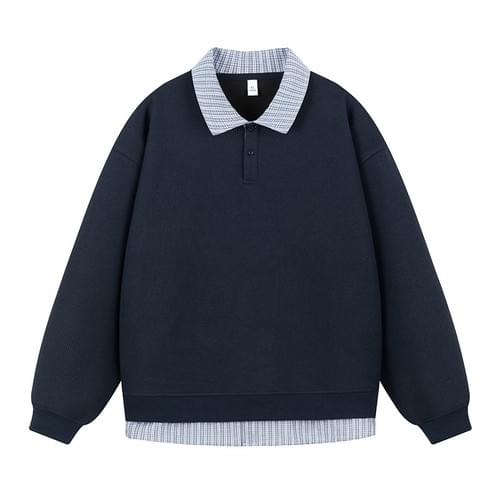 日系假兩件式恤衫縫紉拼接 Waffle 長袖衛衣 [SBH-1346]