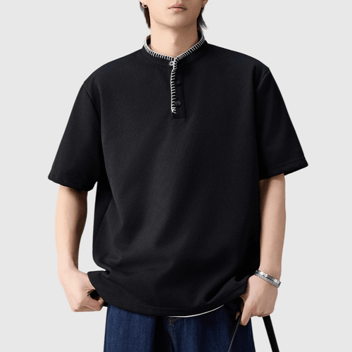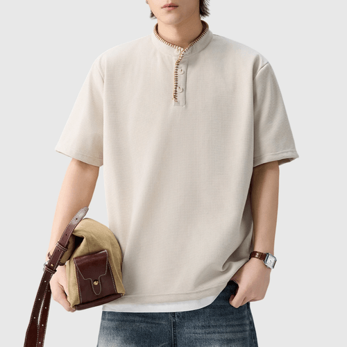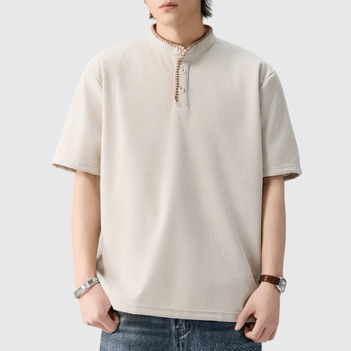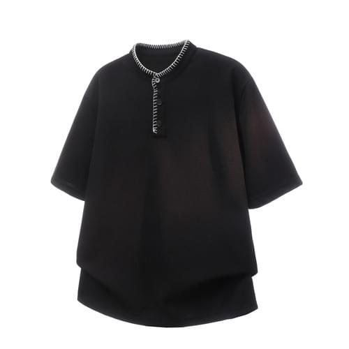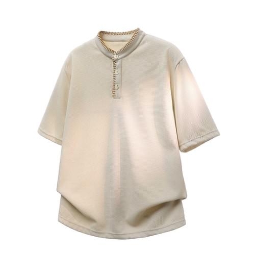 復古領口手工縫線設計 Waffle 半開領鈕扣短袖 T-Shirt [SBT-1566]